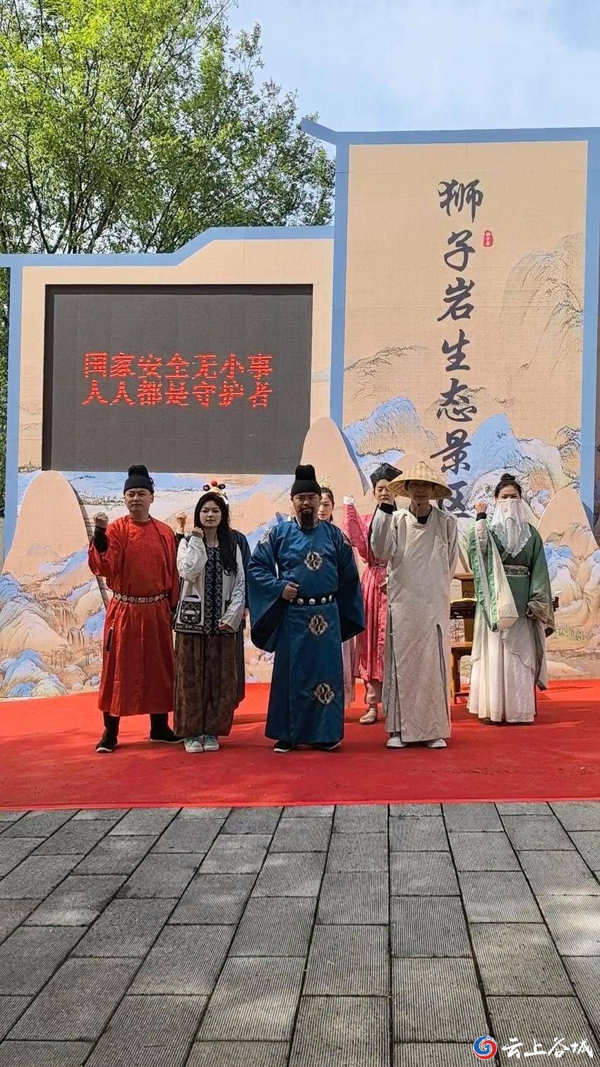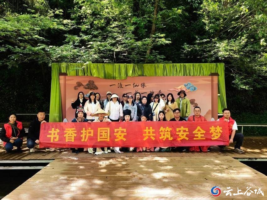 4月22日,春和景明,谷城县狮子岩生态旅游区内书香与绿意交相辉映。一场由茨河镇文化体育服务中心牵头组织、以“书香护国安,共筑安全梦”为主题的国家安全宣传教育活动,在景区幽兰谷火热开展。活动将国家安全知识与全民阅读、山水生态场景深度融合,让游客在品读山水、浸润书香的同时,筑牢国家安全意识防线。