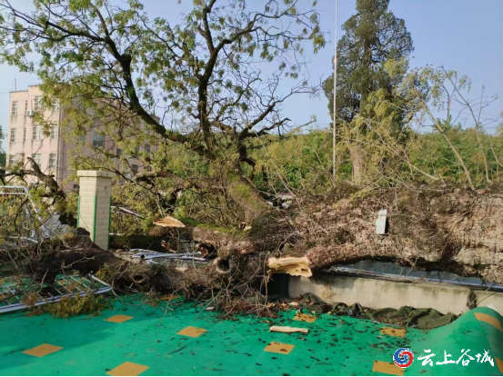 古树名木是珍贵的自然遗产与历史瑰宝,是生态保护工作的重要载体。4月24日夜间,受极端大风强对流天气影响,冷集镇突发强风暴雨,刘家营村煤炭中心小学操场内一株国家一级保护古树黄连木不幸被大风刮倒,古树倒伏后枝干受损严重,古树安全及周边校园环境受到影响。